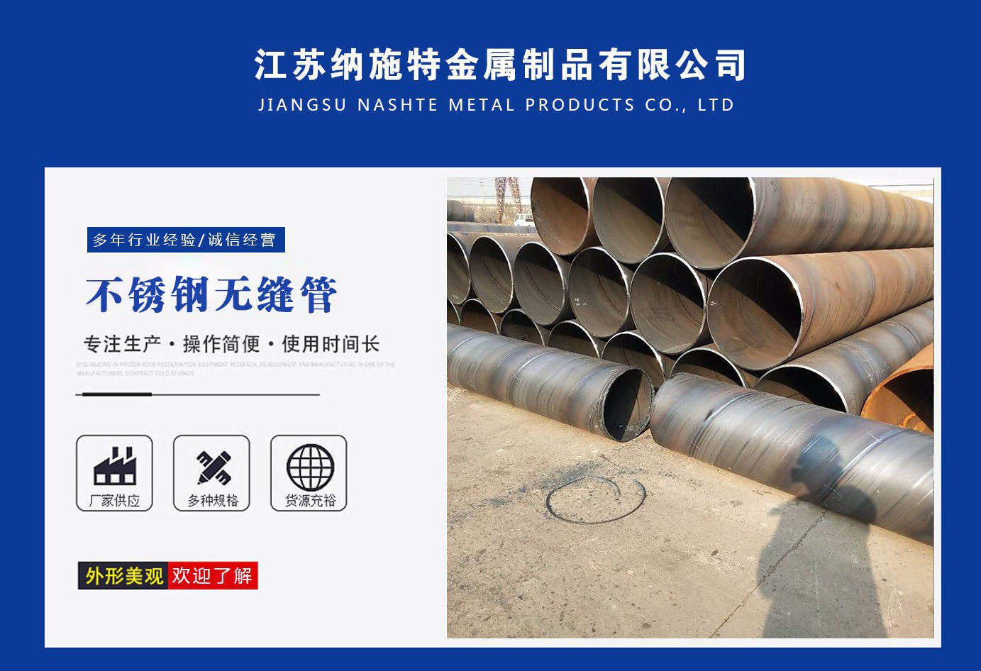 江蘇納施特金屬制品有限公司是一家集生產205不銹鋼無縫管,2507不銹鋼無縫管,316l不銹鋼焊管廠家,不銹鋼工業焊管廠家,厚壁無縫鋼管廠家等產品,公司庫存多規格齊全、質量保證。公司一貫以服務至上、質量至上、價格合理、客戶至上、讓利客戶、薄利多銷為原則,誠實守信為宗旨?! 」颈小皟炠|的品質和服務創造企業品牌”之宗旨,與國內外多家知名廠商建立了長期穩定的合作伙伴關系,精心匯聚各廠商的品牌產品,實現了資源互補,以適應市場的不同需求,協助廣大廠商提高自身的競爭力,是您的理想合作伙伴。 公司下屬:業務部、財務部、快運部、運輸部、倉儲部、加工部、(自備貨車、吊車、行車、自動切割、半成品)免費為用戶提供裝卸等一條龍服務。保證用戶利益、互惠互利做生意、誠心誠意交朋友?! 》粘兄Z:提供優質的不銹鋼及有關產品,遵守道德標準,努力提供獨特的產品和高水平服務。 質量承諾:隨時為客戶提供產品和服務,充分領會客戶要求,盡職盡責,永無例外,竭盡全力,持續發展?! 」颈校骸邦櫩椭辽?,銳意進取”的經營理念,堅持“客戶至上”的原則為廣大客戶提供優質的服務。 愿我們公司和社會各界同仁、諸位朋友、尊貴的各位客戶攜手并進,共同發展,同繪新世紀的宏偉藍圖! 公司宗旨:優質的品質和服務創造企業品牌?! 〗洜I理念:以...